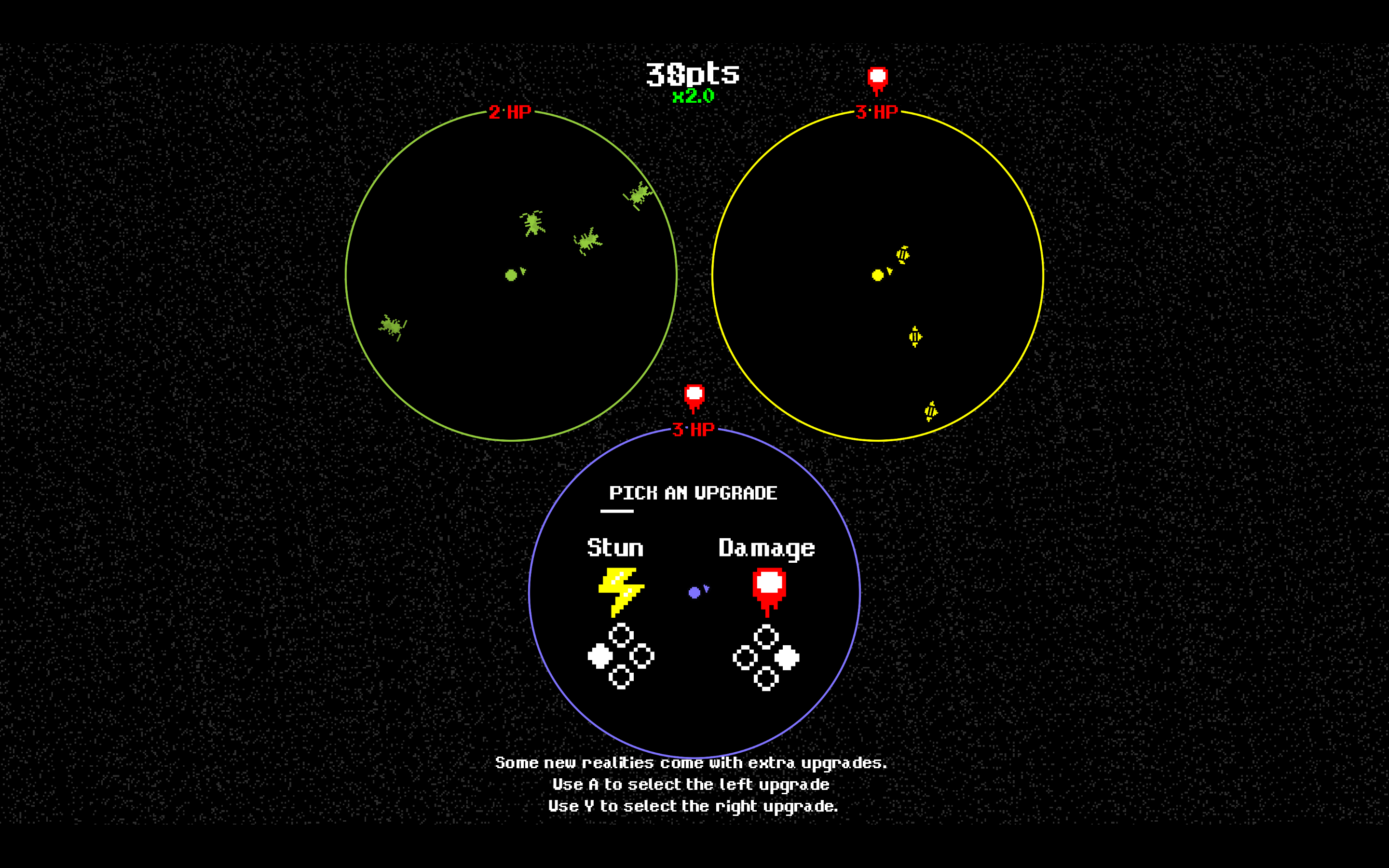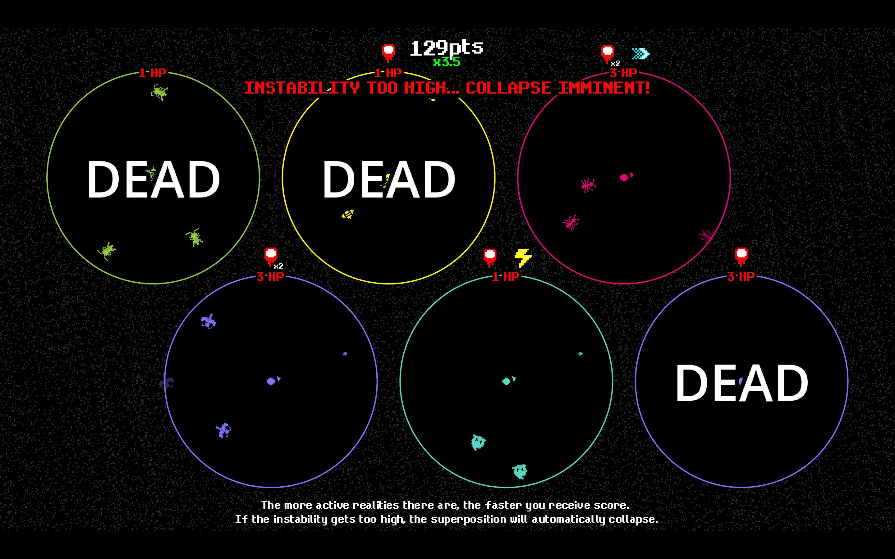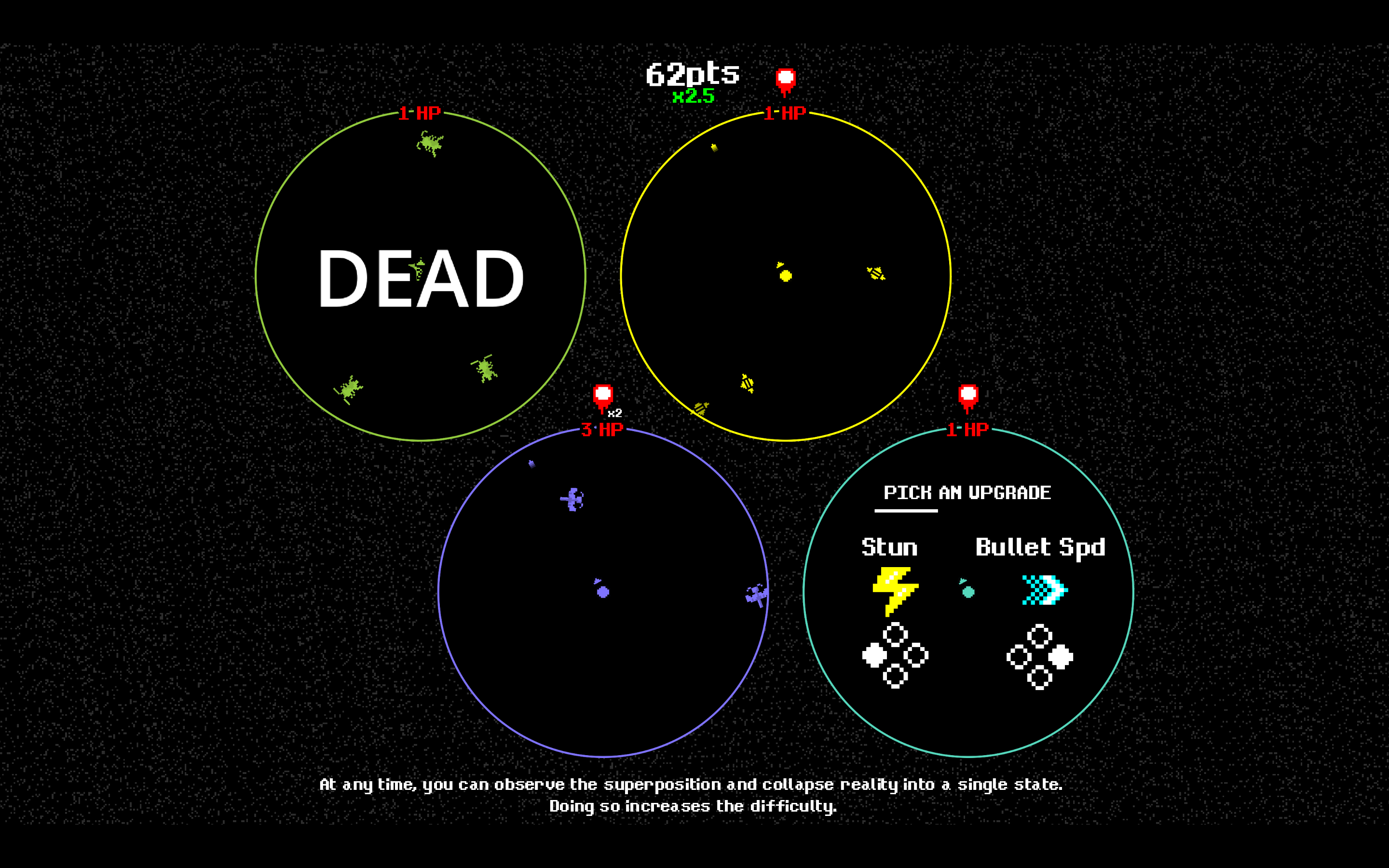 Periodically, reality will split into additional states. Some states come with upgrade choices.